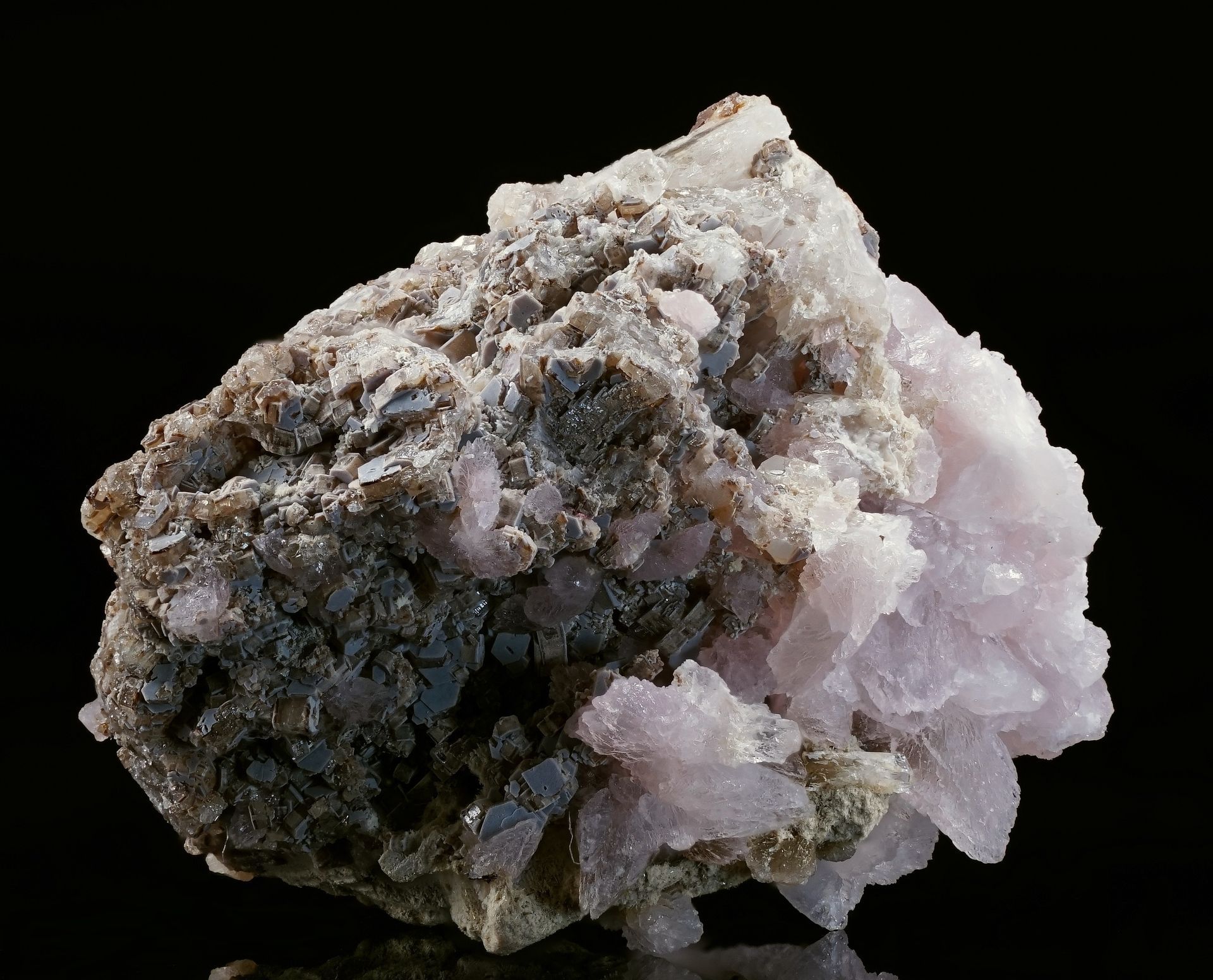 Fluorit, Rhodochrosit auf Polylithionit, Poudrette Quarry, Mont Saint Hilaire, Quebec, Canada Breite 7cm