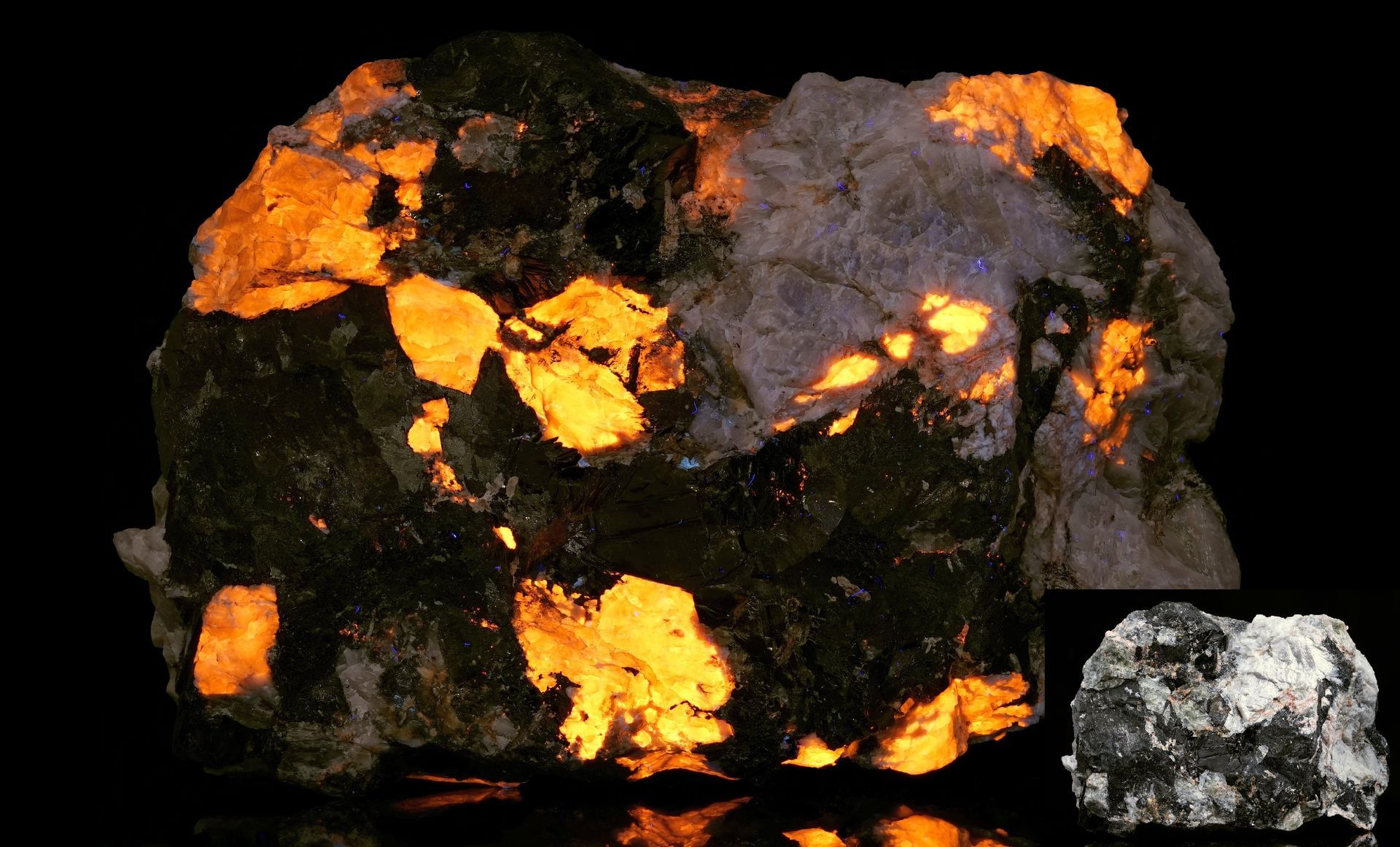 Calcit (UV-langwellig), Narvik, Norwegen, Breite 11cm