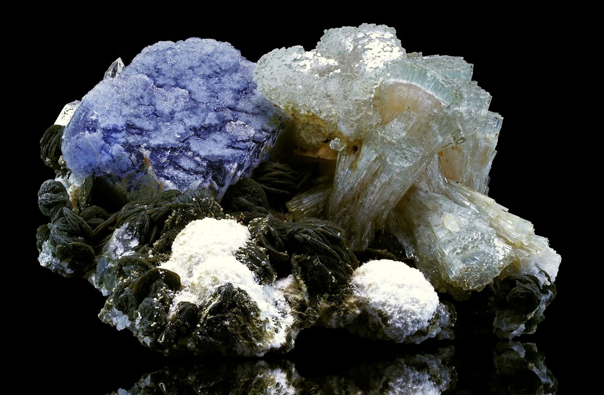 Apatit, Fluorit, Zinnwaldit und Chlorit, Panasqueira, Covilha, Castelo Branco, Portugal, Breite 4cm