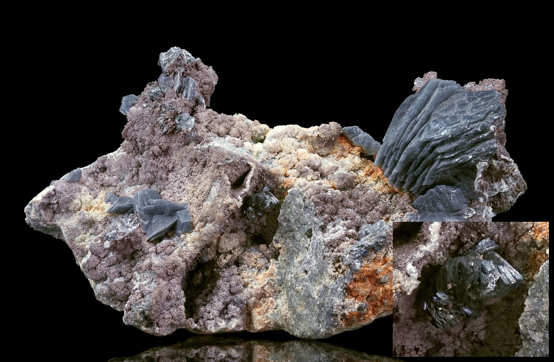 Antimonit, Jamesonit und Calcit, Baia Sprie, Maramures, Rumänien, Breite 4,5cm